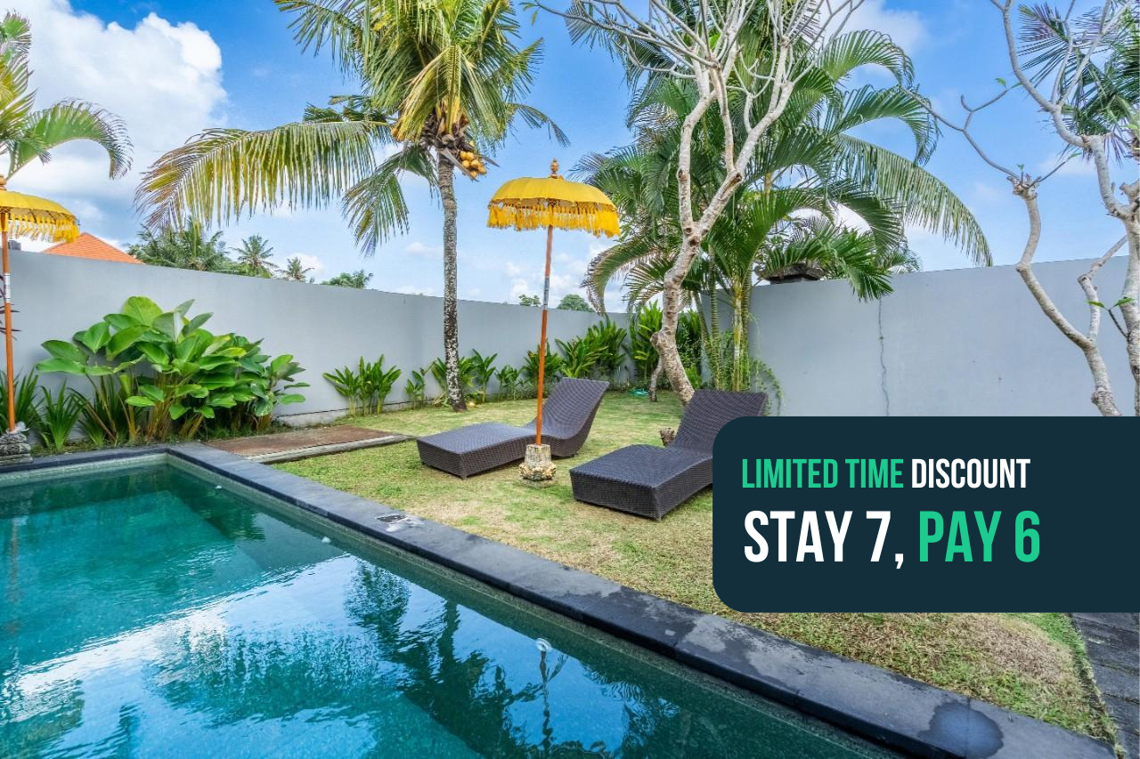 To your attention the essence of elegance and spaciousness — the luxurious Bali rental homes — the 888 villa complex. The complex offers a fantastic selection of identical villas, with five amazing three-bedroom villas and one incredible two-bedroom villa, perfect for everyone! This luxurious pool Bali villas epitomises the perfect blend of opulence and tranquillity, offering an unforgettable retreat wrapped in comfort, simplicity and sophistication. Each home of these Bali holiday rental retreats boasts a spacious and stylish lounge zone with a desk, dining area, TV and high-speed WIFI, artfully adorned with modern furnishings designed to resemble antique wood. Here guests can relax on the plush sofas and enjoy their siesta time, setting the perfect scene for memorable moments with family and friends over a glass of cold fresh smoothie. The 888 rental poolside Bali villas for families and friends has an open plan design that flows seamlessly into a fully equipped kitchen, making it a culinary haven for gourmets. There you will find compact cooking areas, all the necessary cleaning products, toasters, cookers, kitchen utensils, kettles, microwaves and fridges for all your needs. With state-of-the-art appliances and ample worktop spaces, preparing delicious meals becomes easy and enjoyable. Booking these holiday rentals in Ubud, you get three meticulously designed bedrooms that reflect the contemporary elegance of spaciousness with modern amenities to ensure the utmost comfort for every guest. Each bedroom is a serene oasis with a king-size bed, premium linen, wardrobe with hangers, air conditioning, en-suite bathroom (featuring toilet and shower with complimentary toiletries, towels and hairdryer), spacious wardrobes with hangers and blackout curtains to ensure a peaceful and restful escape. Each bedroom colour scheme and their details were thoughtfully designed to create a remarkable and lasting experience. Bedside tables and sockets add a touch of cosiness and ease to your leisure time. To ensure your space remains immaculate throughout your stay, we provide a daily housekeeping service. All safety essentials are taken care of in the villas, including fire extinguishers, first aid kits, video surveillance in the common areas and a secure parking zone, so there's no need to worry about safety while living there. The 888 vacation Bali villa complex leaves no stone unturned when it comes to guest convenience and satisfaction and the rental vacation property’s outdoor space is also designed for the enjoyment and relaxation of guests. Stepping outside the villas, guests are greeted by a heavenly azure pool, inviting them to plunge in and soak up the warm Balinese sun. This sparkling pool is set in a perfectly manicured garden and terrace, creating an enchanting oasis that promises a refreshing and rejuvenating escape. Whether you're lounging on the sunbeds with a good book or taking a dip in the crystal clear waters, you're guaranteed a truly luxurious experience. Inviting parasols and pool towels are also provided for your leisure while staying at this private Bali vacation rentals. We are also thrilled to let you know that we invite each and every one of you to enjoy our exclusive concierge service. We're here to help! We can assist you with trusted bookings for transfers, tours, rentals, entertainment, deliveries, and more. We'll make your stay even more enjoyable. Guests can also take advantage of some convenient extras, such as laundry and ironing services at a charge. And for those looking to unwind, spa services such as yoga classes and massages are available at a charge. For active explorers, bicycles are available for rent to explore the beautiful surroundings. Expedited individual check-in/check-out services are available as well as self check-in and check-out options. Check-in is from 14:00 to 23:00 (please inform the property of your arrival time in advance) and check-out is before 12:00. This private poolside rental 888 villa complex is strategically located within close proximity to fascinating local attractions (Ubud Palace: 3.9 km, Saraswati Temple: 4 km, etc.) and the Ngurah Rai International Airport: 34 km (paid airport shuttle service available). In these Bali villa homes for rent the following guest policies apply for everyone's comfort and peace of mind: • Children welcome (ages 13+ charged as adults) • No pets allowed • No events allowed • Designated smoking areas • Quiet hours from 22:00 to 08:00 Experience unparalleled luxury and turn your dreams into reality at the luxurious Bali rental retreats of the 888 complex. These intimate poolside villas for family and friends promise an unforgettable stay for you and your loved ones or friends. Contact us today for the best deal to book your stay at 888 complex of villas and embark on a journey of bliss and elegance. KINDLY NOTE: Dear guests, construction works are currently underway near the villa. Please take this into account when planning your vacation. We will do our best for your comfortable stay.